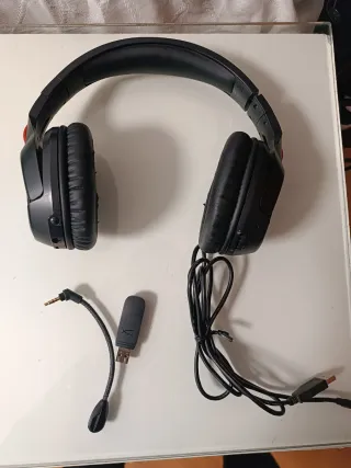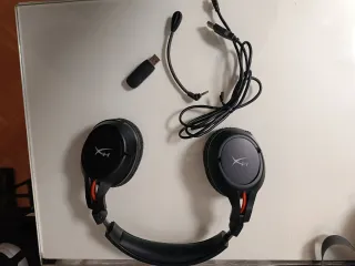 Auriculares inalámbricos HyperX Cloud Flight. - Diseño over-ear con diadema ajustable. - Almohadillas circumaurales para mayor comodidad. - Incluye dongle USB y cable de carga. Funcionan perfectamente y todas las pertes móviles están en buen estado. Las almohadillas están algo desgastadas, pero son remplazables.