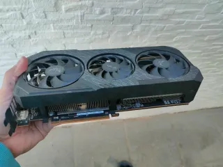 Tarjeta de video ASUS TUF Gaming con tres ventiladores. Lleva guardada 3 años, y estuvo empolvada, funcionaba en su momento me costó muy caro y tiene un excelente rendimiento, no sé si por el tiempo ha dejado de funcionar, no lo puedo probar porque ya vendí mi ordenador con la tarjeta video que fue su reemplazo de esta. Por tal motivo no puedo comprobar el estado de la misma, y además no acepto devoluciones, por eso lo pongo en el estado que lo ha dado todo. - Diseño robusto y elegante. - Sistema de refrigeración eficiente.