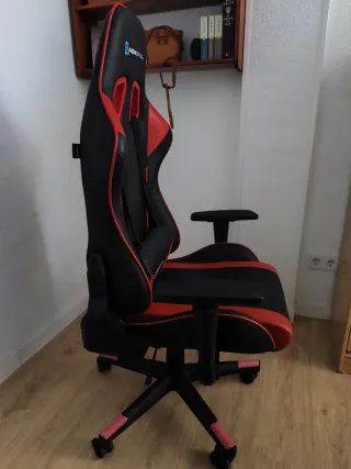 Silla gaming de la marca Newskill en perfecto estado, sin uso. Su diseño combina negro y rojo. - Tapicería de alta calidad. - Cojín lumbar incluido. - Base estable con ruedas.