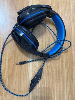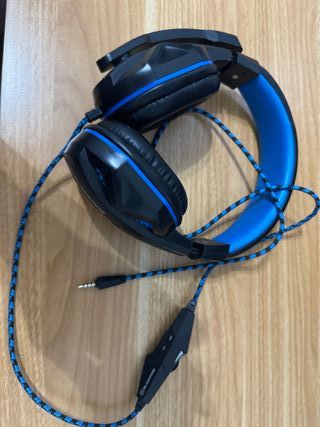 Valor de nuevo 15. Esta como nuevo. Lo he utilizado bastante poco. No son muy confortables pero hacen bien el apaño. Audífonos para gaming con diseño moderno y diadema ajustable. - Color negro con detalles en azul. - Cable trenzado duradero. - Conector jack de 3.5mm.