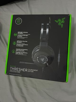 Auriculares gaming Razer con diseño cómodo y sonido envolvente. - Almohadillas de cuero sintético con aislamiento de ruido. - Micrófono retráctil y unidireccional. - Auriculares pivotantes e inclinables. - Controladores de 50 mm para audio potente.