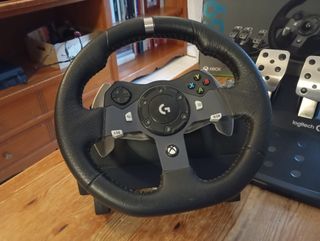 Volante de carreras compatible con Xbox y PC. Incluye pedales y palanca de cambios. - Volante con acabado en cuero. - Pedales de acelerador, freno y embrague. - Palanca de cambios manual. lo compré nuevo y no ha tenido mucho uso, lo vendo por mudanza de casa, la estructura del volante NO está incluida, se vende a parte por 65 euros!!