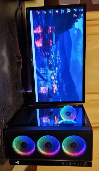 Ordenador con 1 año de uso valorado en 2900 euros ordenador de sobremesa para gaming con iluminación RGB personalizable. - Placa base MSI. 7800x3D - Tarjeta gráfica Geforce RTX.4070ti súper Refrigeración líquida corsair - Múltiples ventiladores con iluminación LED.