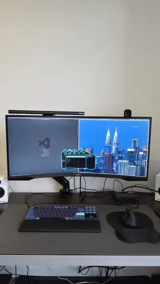 Monitor gaming curvo Samsung Odyssey G5 de 34 pulgadas con resolución WQHD. Se encuentra en buen estado. - Pantalla curva inmersiva. - Resolución WQHD (2560 x 1440). - Tamaño de 34 pulgadas.