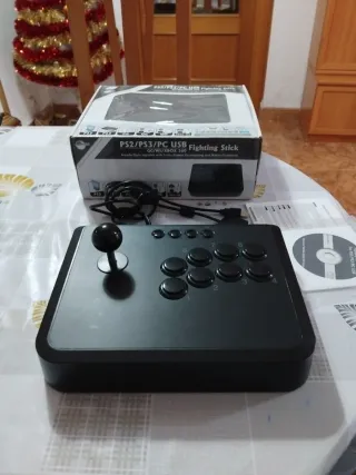 Joystick arcade compatible con PlayStation 2, PlayStation 3 y PC mediante conexión USB. Diseño clásico para juegos de lucha. - Conexión USB. - Palanca y botones de estilo arcade.
