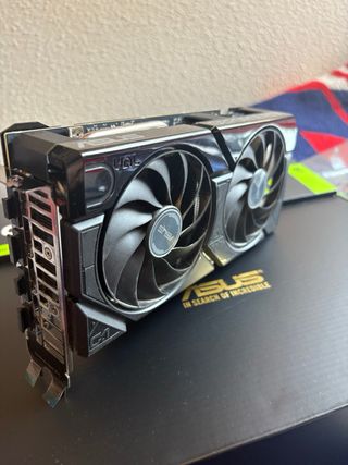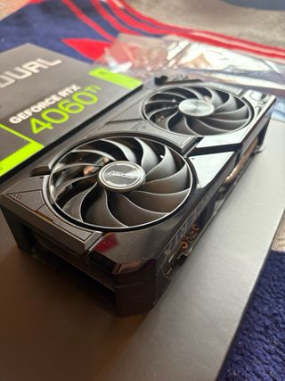 Tarjeta gráfica ASUS GeForce RTX 4060 Ti con 16GB de memoria VRAM. - Modelo DUAL OC ( overclocked ) . - Interfaz PCI Express 4.0. - Soporte para Ray Tracing y DLSS 3. Vendo el corazón de mi set up por razones personales. Ha rendido sin quejas todo lo que le he puesto, tanto 1080p a 180 como 260hz en un monitor 1440p. Es una locura de tarjera gráfica y con los 16GB de DDR6, no hay nada que no mueva, incluso a 4K. - ASUS de lo mejorcito del mercado. - Solo la usé para gaming. Conserva la garantía. Va de locos. No negocio el precio. Está como nueva. Si tienes dudas, escríbeme.