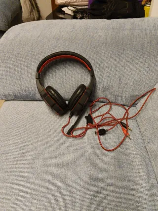 Auriculares para gaming con diadema ajustable y almohadillas cómodas. - Diseño en color rojo y negro. - Cable con conectores de audio y micrófono.