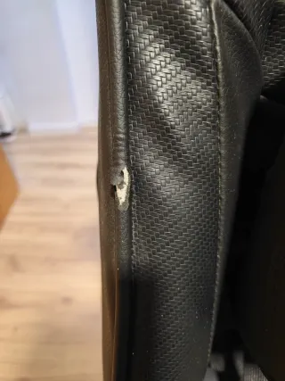 Silla de ordenador con diseño ergonómico, ideal para largas sesiones de juego o trabajo. - Tapicería en cuero sintético negro y rojo. - Respaldo alto con soporte lumbar. - Reposabrazos acolchados. - Base con ruedas para fácil movilidad. Tiene algunos rotos en los reposabrazos y en el asiento, se aprecia en las fotos. Las palancas de inclinación y subir y bajar funcionando perfectamente. Precio no negociable