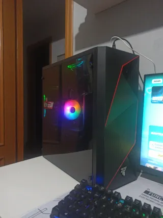 Ordenador de sobremesa de alta gama, ideal para GAMING , STREAMING O DISEÑO ✅✅✅ - Carcasa negra con ventana lateral. - Iluminación LED azul. - Tarjeta gráfica GeForce RTX 4060 - PROCESADOR AMD 5600X - 16GB DE RAM - 466 gigas de almacenamiento en disco duro MUCHOS FPS 👍📌 Fortnite entre 200 y 350 Valorant +300 GTA+ 200 Lo vendo porque ya no lo uso tanto como antes y necesito el espacio que ocupa 🥲🥲 SE ESCUCHAN OFERTAS!!!