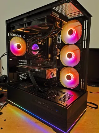 Ordenador de sobremesa para gaming con tarjeta gráfica PNY GeForce RTX. - Diseño moderno con iluminación LED. - Múltiples ventiladores para una óptima refrigeración. - Panel frontal y lateral de cristal templado. - Ryzen 7 7800x3d - RTX 4080 SÚPER - Placa base B650M - 32 GB RAM DDR5 CL36 5600 - Fuente Gigabyte con certificación 80 plus gold 1000W - Mando para controlar el RGB de los 7 ventiladores. El ordenador cumple un año ahora en Diciembre, uso común y muy poca caña, en verano no se utilizó. Garantia con PC Racing de 3 años, ahora mismo quedarían 2, hasta Diciembre de 2027. Temperaturas siempre perfectas.