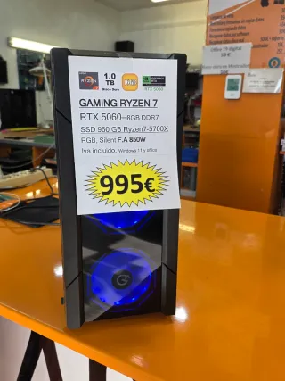 Ordenador de sobremesa para gaming con procesador Ryzen 7. - Tarjeta gráfica RTX 5060 con 8GB de memoria DDR7. - SSD de 960 GB. - Procesador Ryzen 7 5700X. - Diseño RGB y fuente de alimentación silenciosa de 850W. - Incluye Windows 11 y Office.