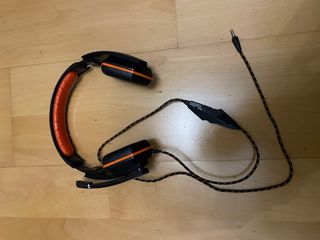 Auriculares para gaming con un diseño llamativo en negro y naranja. - Diadema acolchada para mayor comodidad. - Micrófono integrado. - Conector jack de 3.5mm.
