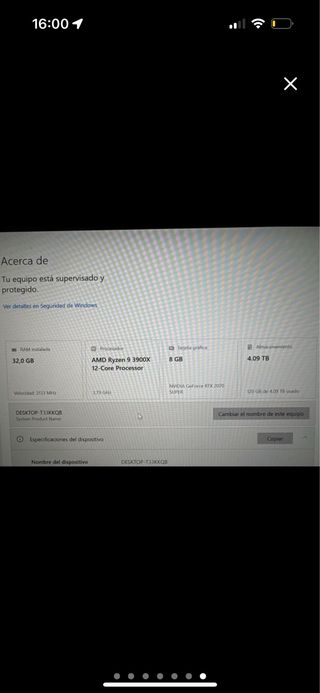 PC gaming de alto rendimiento. Procesador: AMD Ryzen 9 3900X (12 núcleos) Gráfica: NVIDIA RTX 2070 SUPER 8GB RAM: 32GB Almacenamiento: 4TB Refrigeración líquida + RGB Funciona perfectamente, muy potente para juegos, edición y streaming. Se puede probar sin problema. Regalo teclado logitech y raton