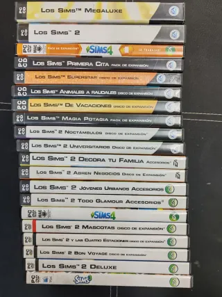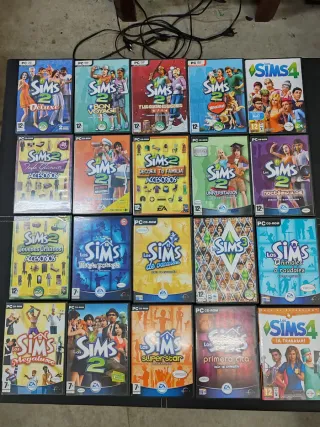 Colección de 20 juegos de ordenador de Los Sims, incluyendo varias expansiones.Lote 60€ se realizan envíos por mensajería 9€ y el pago por bizum o transferencia - Los Sims 2 Deluxe - Los Sims 2 Bon Voyage - Los Sims 2 Y las cuatro estaciones - Los Sims 2 Mascotas - Los Sims 2 Noche de Película - Los Sims 2 Jóvenes Urbanos - Los Sims 2 Magia Potagia - Los Sims 2 De Vacaciones - Los Sims 2 Universitarios - Los Sims 2 Animales a raudales - Los Sims Megaluxe - Los Sims Superstar - Los Sims Primera Cita - Los Sims 4 ¡A Trabajar! - Los Sims 3