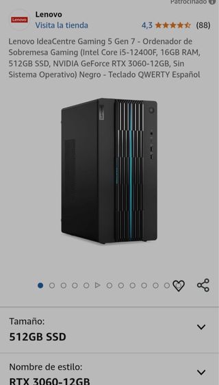 Vendo PC GAMING LENOVO 17IAB7 Intel® Core™ i5-12400F, 16GB RAM DDR4, 512GB NVMe + 1TB HDD, sin unidad óptica, NVIDIA GeForce RTX 3060 Ti 8GB, HDMI, DP, Ethernet, Wifi-6, BT5.1, USB-C, sin sistema operativo, 8.4Kg, negro. Este ordenador es el modelo 90T1008NES con un precio de venta al publico de 1100 euros. Precintado en caja nuevo nunca se ha usado, solo se ha abierto la caja para hacer la foto, oportunidad unica.