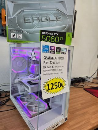 Ordenador gaming con procesador Intel Core i5 12400f y gráfica NVIDIA GeForce RTX 5060 Ti de 8GB. appinformatica c/Estación,27 Valladolid - Procesador: Intel Core i5 12400f - Tarjeta Gráfica: NVIDIA GeForce RTX 5060 Ti 8GB - Memoria RAM: 32GB DDR4 - Almacenamiento: SSD M.2 NVMe 2TB - Incluye Windows 11 y Office