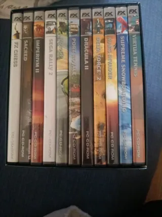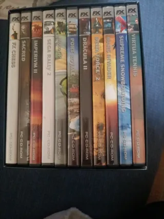 Lote de juegos para PC de la marca FX. - FX Chess - Sacred - Imperivm II - Sega Rally 2 - MotoGP - Port Royale - Drácula II - Delta Force 2 - Mars Invader - Supreme Snowboarding - Virtua Tennis