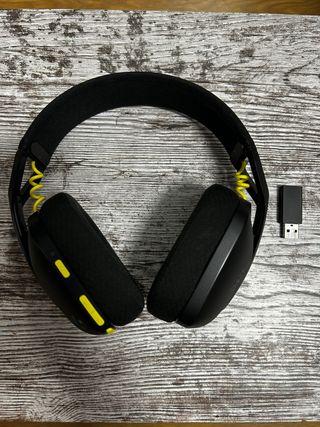 Auriculares inalámbricos Logitech G435 en color negro con detalles en amarillo. Son ligeros y cómodos. Están en buenas condiciones y funcionas perfectamente. - Diseño moderno en negro y amarillo. - Conexión inalámbrica. - Almohadillas suaves.