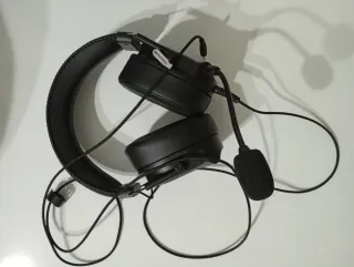 Auriculares gaming con cable y micrófono integrado. Cuentan con iluminación LED en los laterales y en la punta del micrófono. - Diseño ergonómico. - Micrófono flexible y ajustable. - Cable de conexión de cordón trenzado duradero, con conexión a jack 3.5 y usb para alimentar las luces. - Botón físico en el cable para mute y ajuste de volumen. - Almohadillas en muy buen estado a excepción de la de la diadema, que de tenerlos enganchados, se abrió.