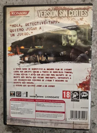 Videojuego Saw para PC. - Compatible con DVD únicamente. El juego está nuevo, sin ningún mínimo arañazo. Muy cuidado.