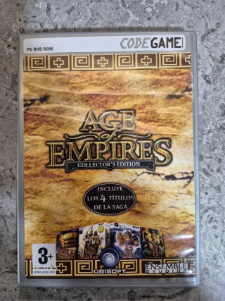 Edición Coleccionista de Age of Empires para PC. - Incluye los 4 títulos de la saga. - Formato PC DVD ROM. - Incluye los juegos de Ensemble Studios. Como se ve en las fotos, está impecable. Sin ningún mínimo arañazo.