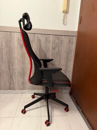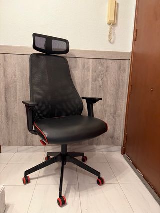 Silla gaming IKEA MATCHSPEL – como nueva Vendo silla gaming IKEA MATCHSPEL en color negro. Muy cómoda y resistente, ideal para trabajar o jugar durante horas. -Respaldo alto con reposacabezas -Reposabrazos ajustables -Respaldo transpirable (rejilla) -Altura regulable -Base estable con ruedas -Diseño moderno y ergonómico Está en muy buen estado, sin roturas ni desperfectos. Precio actual en IKEA: 189 €. 👉 Se vende por cambio de mobiliario. 👉 Lista para usar.