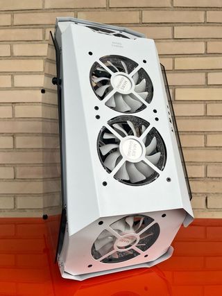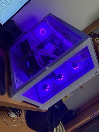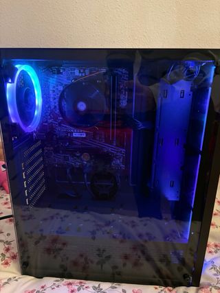 Torre de PC con una pantalla integrada en la parte frontal funcionando perfectamente - Panel lateral de cristal. - Iluminación LED RGB en los ventiladores. 3 ventiladores con controladora incluidos Precio de 75 euros