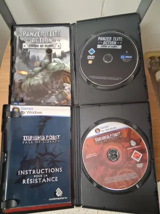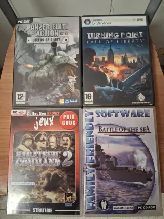 Pack de cuatro videojuegos para PC. - Panzer Elite Action: Fields of Glory - Turning Point: Fall of Liberty - Strategic Command 2 - Software: Battle of the Sea - estado bueno - mas juegos en mi perfil - Realizo envíos a través de Wallapop