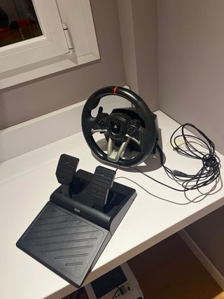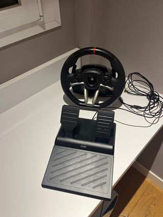 Volante de conducción Hori con base de pedales. - Diseño ergonómico para un agarre cómodo. - Incluye pedales de acelerador y freno. - Compatible con PlayStation y PC