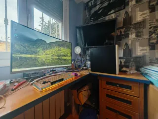 Vendo PC gamer montado por piezas hace aproximadamente un año, en estado prácticamente nuevo. El motivo de la venta es que, por trabajo, apenas estoy en casa y no le doy uso. Equipo potente, va muy fino y es silencioso. Comprado por piezas en PcComponentes (dispongo de facturas). Se puede probar 🔧 Componentes: Tarjeta gráfica: MSI RTX 4060 VENTUS OC 8 GB GDDR6 | DLSS 3 Procesador: AMD Ryzen 5 5600X Placa base: ASUS PRIME B550M WIFI II Memoria RAM: Corsair DDR4 3200 MHz – 16 GB (2x8 GB) Almacenamiento: SSD NVMe de 1 TB Fuente de alimentación: MSI MAG 650W – 80 Plus Bronze