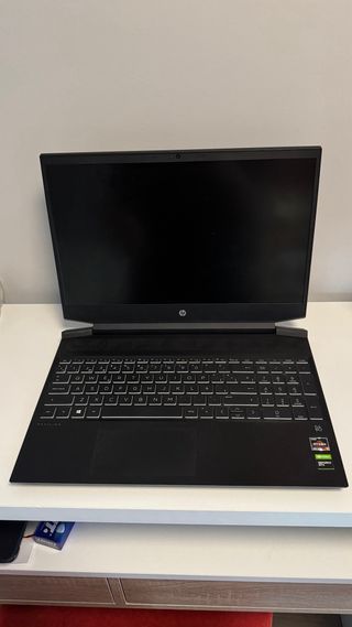 Portátil HP gaming perfecto para juegos poco exigentes e indies, también para un uso de ofimática estándar. Cuenta con teclado retroiluminado, un puerto usb c, puerto ethernet, puerto HDMI y 2 usb. Windows 11 Home Procesador Ryzen 5 4600H 3ghz de 6 núcleos RAM 8GB Tarjeta dedicada 1650ti 4GB Disco duro SSD de 500GB (útil un poco menos por el espacio que ocupa windows) El inconveniente es que la batería está degradada y hay que usarlo enchufado. Existen recambios si se quiere cambiar.