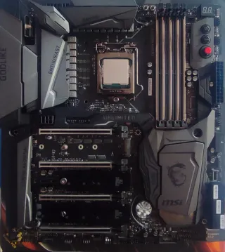 Incluye: -Placa base msi z370 godlike gaming. Placa base tope de gama, preparada para overlock extremo. No tiene salida de video por lo que es necesaria GPU dedicada. Antes de comprar visitar la página oficial y manual de la placa para ver características. LEER OBSERVACIONES!!!: Tiene pequeño golpe en esquina inferior, no afecta al funcionamiento de la placa, es meramente estético. Trae algunos accesorios NO se envía en caja original Lleva antenas wifi NO originales -Procesador i5 9600KF, 6 hilos y 6 núcleos, frecuencia base 3.7 GHz y frecuencia turbo 4.6 GHz, 9 MB de caché. No tiene GPU integrada. -Disipador thermaright