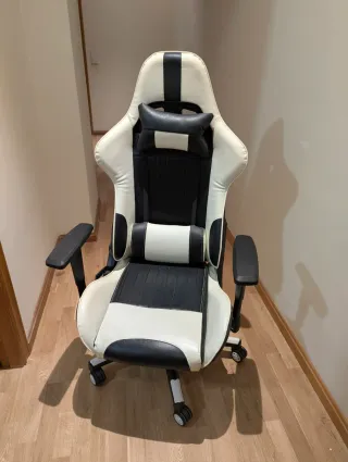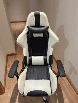 Silla de estilo gaming compara en 2021 con muy poco uso y en perfecto estado. En color blanco y negro. - Tapicería de polipiel. - Respaldo alto. - Cojín lumbar y cervical. - Base con ruedas. Se hacen envios y si quieres venir a por ella, también serás bienvenido.