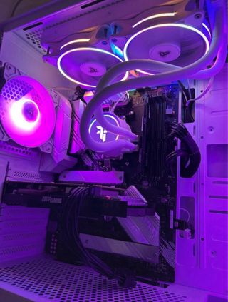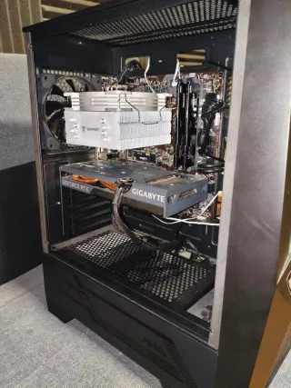 RTX 3060 OC 12 GB CPU Intel I5-11400F RAM 2x8 GB Kingston Fury ddr4 Motherboard gigabyte B560 SSD Knoxia 500Gb Fuente corsair 650W 2 vent delanteros 1 vent trasero Disipador en CPU Tempest Caja MSI con cristal templado lateral y rejilla retirable superior Corre perfectamente 1080 y bien 2k 144fps