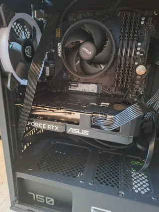 Ordenador Gaming nuevo recién montado, corre genial con los gráficos al tope cualquier juego exigente a muy buenos fps, como GTA V, fortnite, Red Dead Redemption 2, ARK, etc. - Windows 11 Caracteristicas de componentes: Procesador: AMD Ryzen 7 5700 4.6 GHZ Almacenamiento SSD: Samsung 990 EVO Plus 2TB + 220GB ssd adicional Refrigeración: liquida Tempest RGB 240 mm de dos ventiladores Tarjeta grafica : Nvidia GeForce GTX 1660 GDDR6 Placa base: Asus ROG Strix B550-A Gaming Memoria Ram: Kingston Fury 16 GB Fuente de alimentación: MSI MAG A650BN 650W 80 Plus La torre es una Tempest Mirage. Precio negociable