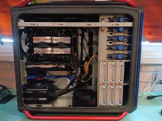 Vendo potente PC ideal para jugar, trabajar, editar y estudiar. Ensamblado en una torre Cooler Master Cosmos, de gran tamaño y calidad. Las medidas de la torre son: Largo 64cm/ Ancho 27 / Alto 60 Los USB 3.0 traseros dejaron de funcionar y los sustituí por otros que van al back panel. 2 procesadores Intel Xeon E5-2670v2 2,5 GHz 20 núcleos/ 40 hilos(10 núcleos y 20 Hilos cada uno) Tarjeta gráfica AMD Radeon RX580 2048SP 8GB RAM 64 GB DDR3 (4x16GB) SSD M.2 NVMe 1.3 PCIe Gen3 500GB mas uno de Disco mecánico de 1 Tb y otro de 500GB Unidad de DVD 5 1/4" Antena WiFi PCIe Fuente de alimentacion Thermaltake 500W Smart Series Windows 11 Pro