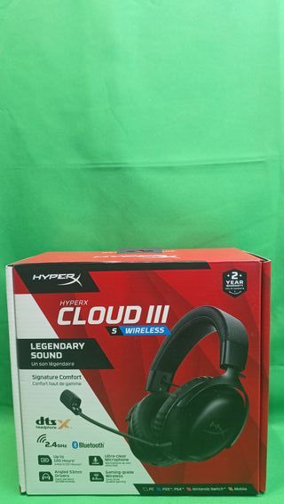 Auriculares gaming inalámbricos HyperX Cloud III en color negro. - Diseño ergonómico y diadema ajustable. - Almohadillas suaves para mayor comodidad. - Micrófono integrado. Ref. 44204 Somos tienda y realizamos envios a toda España, Precio no Negociable!