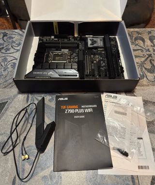 Placa base ASUS TUF Gaming Z790-PLUS WIFI. - Compatible con procesadores Intel de 12ª, 13ª y 14ª generación. - Soporta memoria DDR5. - Incluye Wi-Fi 6E. - Conectividad Aura Sync y ARGB Gen2. Está en perfecto estado, prácticamente nueva con muy poco uso.