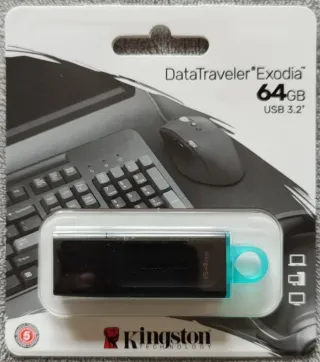 Pendrive Kingston DataTraveler Exodia de 64GB. Nuevo y en su blister. - Capacidad: 64GB - Interfaz: USB 3.2 - Modelo: DataTraveler Exodia - Color: Negro con detalle turquesa