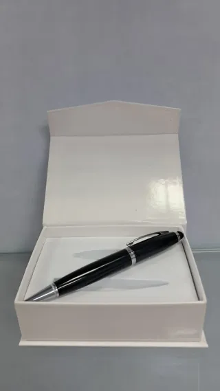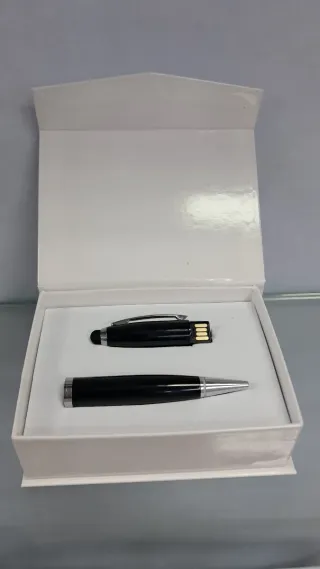 Bolígrafo elegante con función de pendrive integrada. Ideal para llevar tus archivos contigo con estilo. - Capacidad de 16 GB. - Diseño en color negro con detalles plateados.