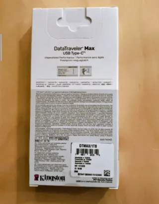 Pendrive Kingston DataTraveler Max de 1TB con conexión USB Type-C. Capacidad: 1TB Interfaz: USB 3.2 Gen 2 Velocidad de lectura: 1000MB/s Velocidad de escritura: 900MB/s ATENCIÓN: No tiene conexión USB-A ni incluye adaptador USB-C a USB-A Nuevo, sin abrir