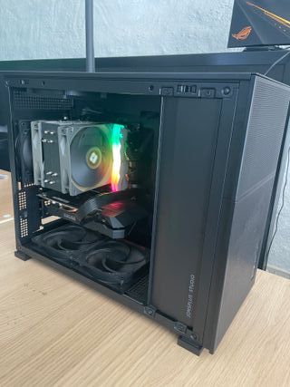 NVME Kingston kc3000 500gb RAM DDR5 6000 MTs TGroup Delta force cl32 CPU AMD 7400F 4.7Ghz 6 núcleos 12 hilos AM5 Placa Base Night Devil AM5 ITX CPU cooler Thermalright Peerless Assasin GPU NVIDIA GTX 1660 super Caja JONSBO D31 MATX Ventilador NVME