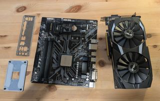 Tarjeta Gráfica ASUS Dual Radeon RX 580 OC Placa Base Gigabyte B450M DS3H Procesador AMD Ryzen 5 2500