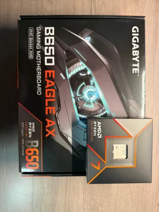 Pack de placa base Gigabyte B650 EAGLE AX y procesador AMD Ryzen 7 9700X. En perfecto estado, incluye cajas originales. No acepto intercambios