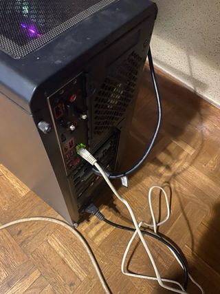 Vendo este PC ya que e renovado, pero e usado la fuente que tenía en este, es por eso que este no tiene fuente. El único problema que tiene está en la caja, pero todos los componentes están en perfectas condiciones, en cuanto a la caja, el ventilador superior del frontal está dañado y el inferior del frontal a veces se atasca por último el ventilador trasero rara vez hace un traqueteo, esto es lo único mal. -Procesador: AMD Ryzen 5 5600X -RAM: 32gb ddr4 3200MHz cl16-18 Kingston fury -Placa base:MSI Mag mortar B550m -Grafica: AMD Radeon RX 7600XT -Disco duro:SSD kioxia exceria 480GB -Refrigeracion:Artic Freezer A13X CO