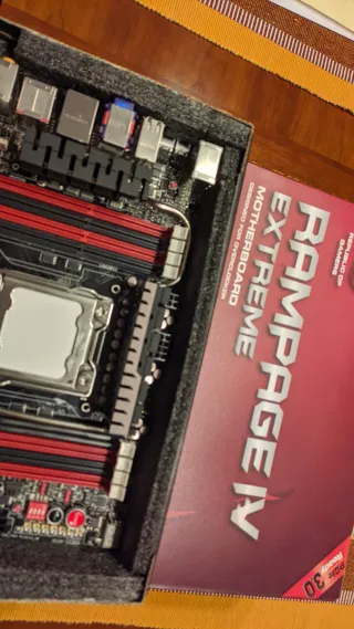 - Placa base ASUS ROG Rampage IV Black Edition. X79 - Procesador Intel 4930k - 32 gb Memoria RAM Corsair Dominator platinum DDR3 2133 - Disipador de CPU Thermalright Archon SB-E X2 No incluye cables SATA