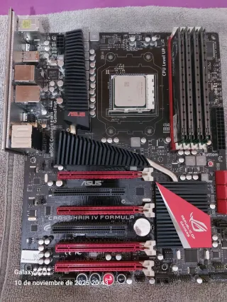 Conjunto de placa base ASUS Crosshair IV Formula, procesador AMD phenom 2 x6 1090T, memoria RAM 8 gb ddr3 - Placa base ASUS ROG Crosshair IV Formula - Procesador instalado AMD phenom 2 X6 1090T - Módulos de memoria RAM total 8 gb - Diseño ROG Republic of Gamers. - Precio 76 euros no hago envios