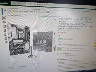 Placa base ASUS B650E MAX GAMING WIFI para socket AM5. Semi nueva, la vendo porque la cambie por otra más grande Funciona perfectamente y nunca me ha dado problemas Se vende sin la caja original, pero si en la caja de otra placa base MSI, y con el manual original - Diseño en color negro. - Soporte para procesadores AMD Ryzen. - Conectividad WiFi integrada.