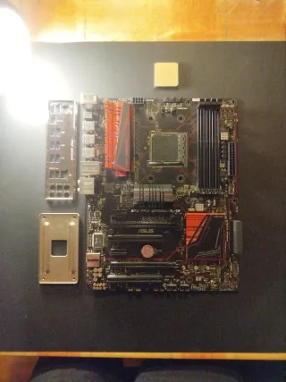 Vendo un combo de CPU + Placa Base. Está muy bien conservado y funciona perfectamente. Aquí los specs: • Placa Base: > ASUS 970 PRO GAMING/AURA. --- Socket AM3+ Con conector EATX12V CPU --- USB 3.1 x2, Gigabit, y surround sound e optico --- 6 Puertos S-ATA --- PCIe 3.0 --- Gama PRO GAMING • CPU: > AMD FX 8350. --- 8 Nucleos --- 4.2 GHz Boost Un cambio o negocio es posible.