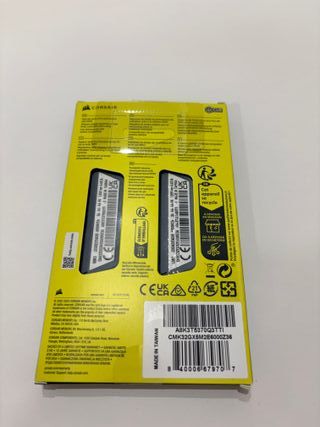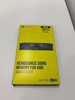 Optimiza tu equipo con esta memoria CORSAIR VENGEANCE DDR5, diseñada específicamente para placas base AMD®. Ofrece frecuencias más altas y mayores capacidades en un módulo compacto de alta calidad que encaja perfectamente en cualquier montaje. Estado: Solo probada para verificar funcionamiento (prácticamente a estrenar). Comprada en Amazon con garantía de 3 años. Especificaciones Técnicas: Modelo: CMK32GX5M2E6000Z36 Capacidad: 32GB (Kit de 2 x 16GB) Latencia probada: 36-44-44-96 Velocidad: 6000 MT/s Formato: PC5-48000 (DDR5-6000)